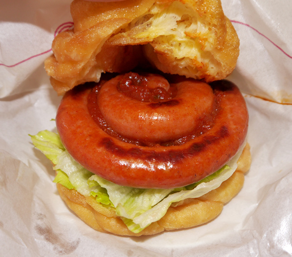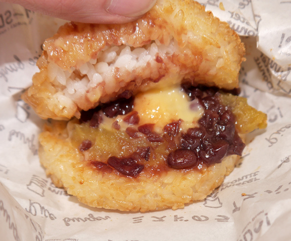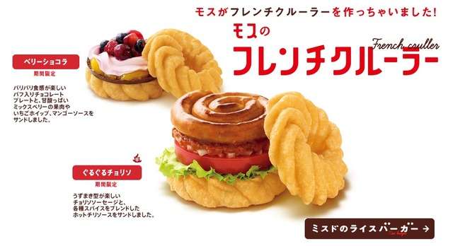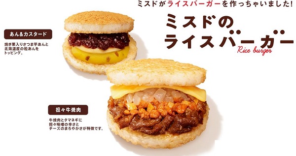 Mister Donut則是「紅豆卡士達米漢堡」和「担担牛燒肉米漢堡」