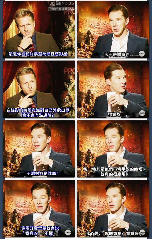 【迷妹專欄】班奈狄克·康柏拜區朗誦性感歌詞 麗莎邱迷妹專欄2014/07/216745 今年38歲班奈狄克·康柏拜區在名主持人吉米基莫的節目上表演朗誦勞凱力的性感歌曲”天才”。(看更多吉米) 穿著深色西裝、挺坐在凳子上,班奈狄克·康柏拜區證明了他可以邊保持嚴肅的表情邊朗誦這首令人血脈噴張的歌曲。 僅代表全台灣的迷魅祝7/19生日的班奈狄克,生日快樂~~ 附上好好聽的原曲,LALALALALA~ 底下來看看麗莎曾經翻譯的梗圖們吧! 分享到Facebook