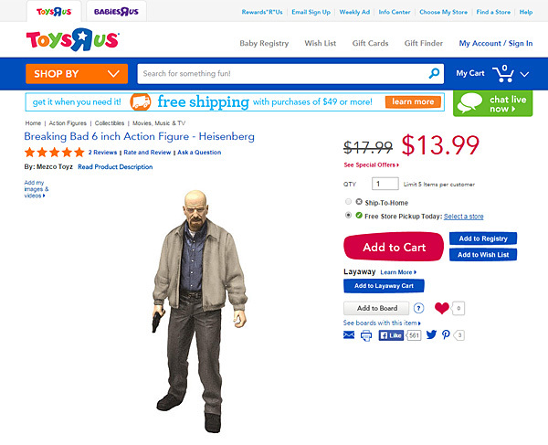 其實這應該是給影集迷買的公仔,只是美國玩具反斗城上架銷售此玩具而被撻伐,收到太多抱怨後便下架了。