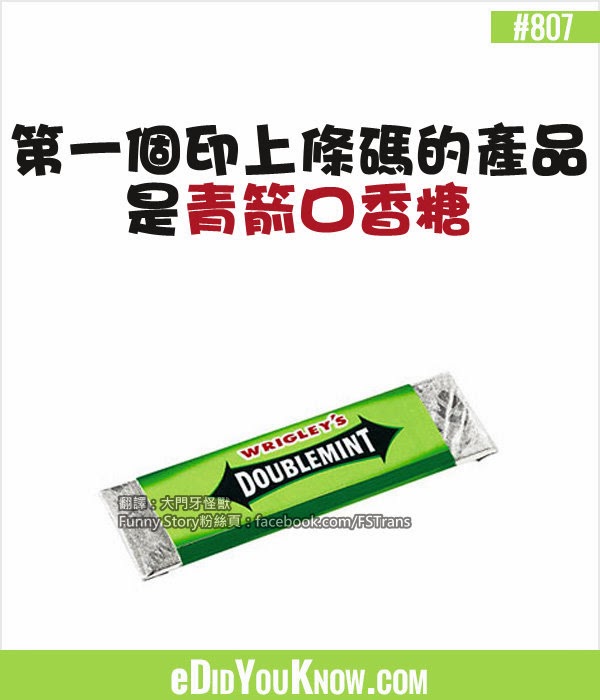 1952年,美國的德瑞索理工學院的兩名學生(Joseph Woodland & Bernard Silver)想出了一個幫助店家紀錄庫存與加速結帳的新方法,並且獲得專利,也就是第一代的條碼誕生了。當條碼被掃瞄過後,便能獲得資料,立刻辨識出產品。第一個印上條碼的產品是一包青箭口香糖。如今,這包口香糖在美國國立歷史博物館中展出。