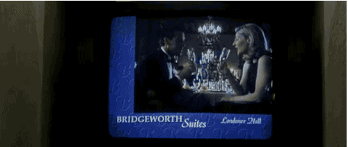4. 同樣地,在遇到泰勒德頓前,有幕是敘事者在飯店時眼前電視正播放著Bridgeworth飯店廣告…
