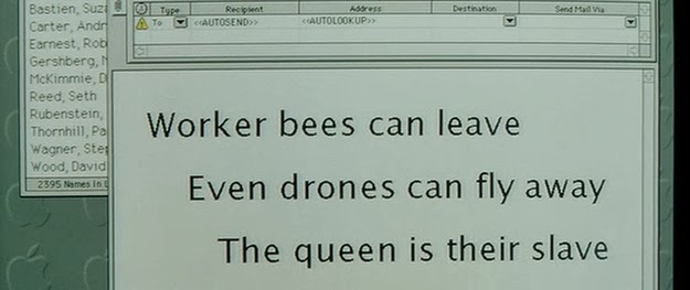 16. 敘事者上班時坐在電腦前寫俳句(haikus)那幕,螢幕上還有個寫滿名字的文件檔,那是電影製作助理和拍攝小組成員的名字。