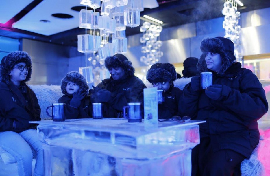 在冰室內喝熱可可,享受冰天雪地的氣圍