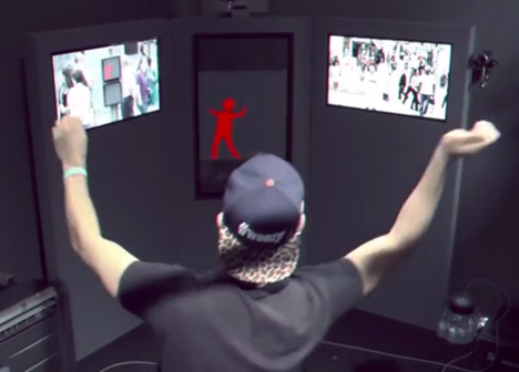 這個小紅人的舞步都是從自願參加者中的舞步中,利用動作捕捉技術,即時轉換而來的。