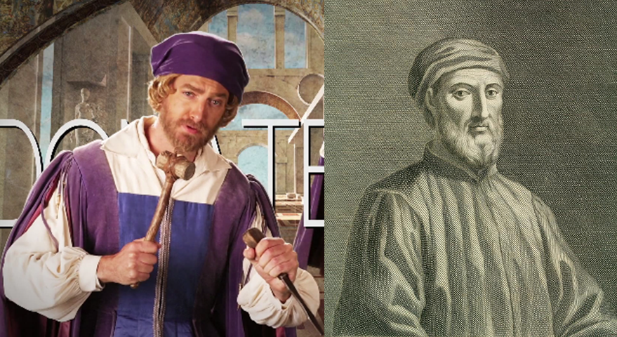 Dona-tell me 是用多納太羅自己的名字玩的文字遊戲。另外多納太羅刻了一座加塔梅拉塔(Gattamelata,文藝復興時期維尼斯共和國的傭兵隊長)的雕像,順便用don’t Gattamelata (get a) clue what you do來玩文字遊戲。。