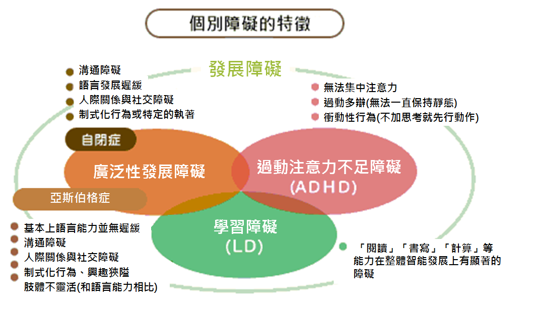 大家還記得宅貓之前翻譯的漫畫「天才傻寶」嗎? 「天才傻寶」所討論的是亞斯伯格症,而ADHD(注意力不足過動症)則是與亞斯伯格症同為發展障礙的一種先天性中樞神經發展障礙。發展障礙所包含的各種障礙簡單說明如下圖。另外,如圖所示這些障礙間有重疊的部分,也就是某些人可能同時有過動與學習障礙或其他併發的情況。這些行為的診斷通常需要花一段時間來觀察,也因為經常造成周遭的困擾所以不容易被理解。