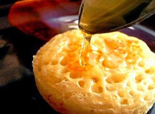 英國烤餅,又稱小圓烤餅,是純英式茶點,用麵粉或馬鈴薯和酵母製成,扁平的頂上有一粒粒小孔,還有海綿狀的紋理和柔和清淡的味道。一般會塗上奶油、果醬等一起食用。(出自維基百科)