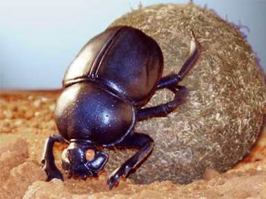 話說,備受埃及人崇仰的「聖甲蟲」(Scarabaeus sacer),其實就是糞金龜本人呢。在埃及,糞金龜推糞便的動作被認為是和太陽的運轉有關,埃及人非常崇拜太陽神,所以糞金龜也就變成了太陽神的化身。埃及人也發現糞金龜死後會在土中復活,因此他又被認為是復生的象徵,其實只是糞金龜把卵放在糞便裡,再把糞便埋在土裡,幼蟲長成成蟲爬出土而已。