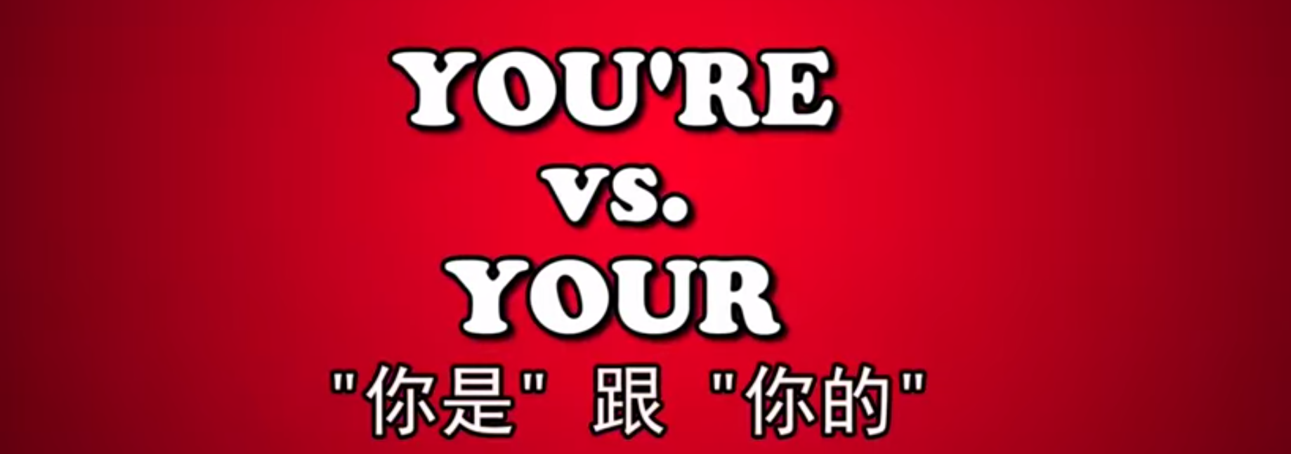 【原創惡搞歌曲】 YOU’RE vs YOUR (“你是” 跟 “你的”) – 傑克教英文 zass17Jacksfilms, 惡搞歌曲2014/11/042427 從來不認為分辨 “You’re” 還有 “Your” 會是亞洲人的問題。翻譯這首Jacksfilms的歌,單純就是它-好-洗-腦。。但如果你有朋友真的還是傻傻分不清……啪啪 歪果人似乎還需要用圖解如下: 還有各種Memes: 1. 你能分辨”your”還有”you’re”? 就讓我為你寬衣解帶吧! 2. 知道你能正確使用 “You’re”時,我就戀上你了 3. 文法:你的屎 和 你是屎 的分別 分享到Facebook