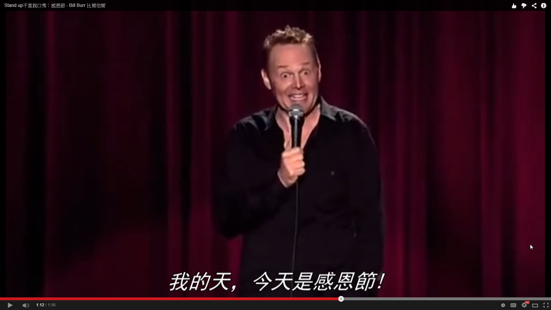 Stand-up: Bill Burr的感恩節故事 zass17Bill Burr, stand up, 感恩節, 比爾伯爾, 脫口秀2014/11/273818 關於感恩節的背景大家應該都已經聽的耳熟能詳了。 這裡比爾伯爾真誠的分享他的感恩節故事。如果跟你我的人生有部分雷同,請記住,他只是在搞笑,該做的事情,該盡的責任還是要做,人家只是想想而已。大家千萬別太認真欸! 分享到Facebook